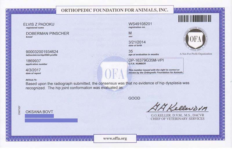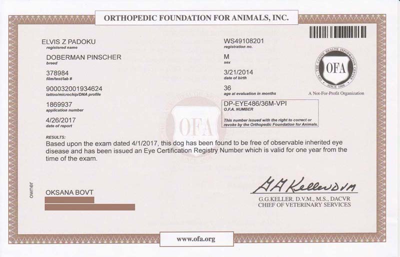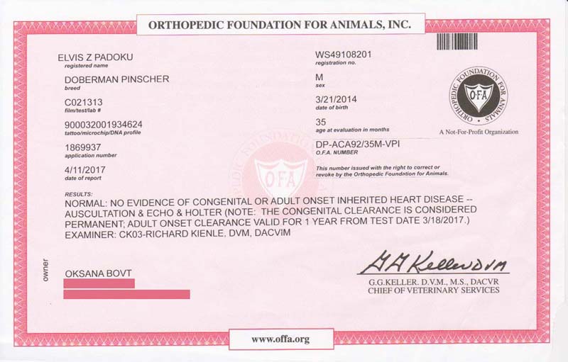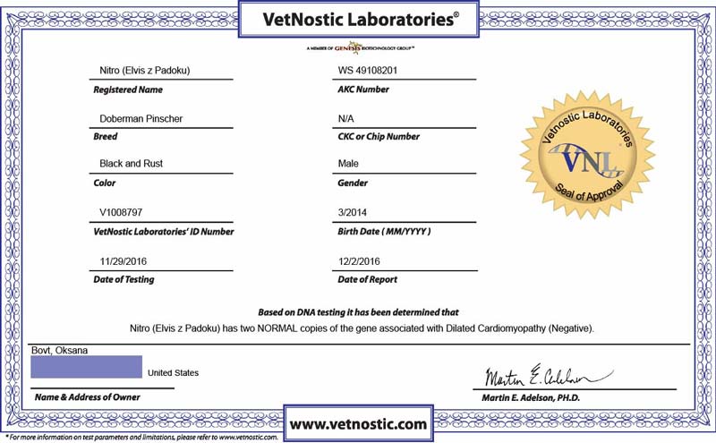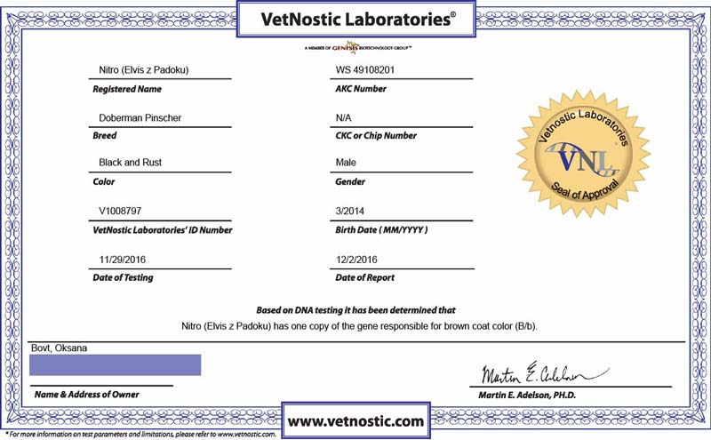 He has been tested for breed specific and genetic diseases. His test certificates are below.